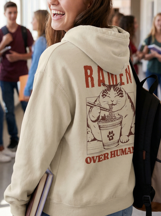 Ramen Over Humans Hoodie – Funny Cat Ramen Meme Sweatshirt